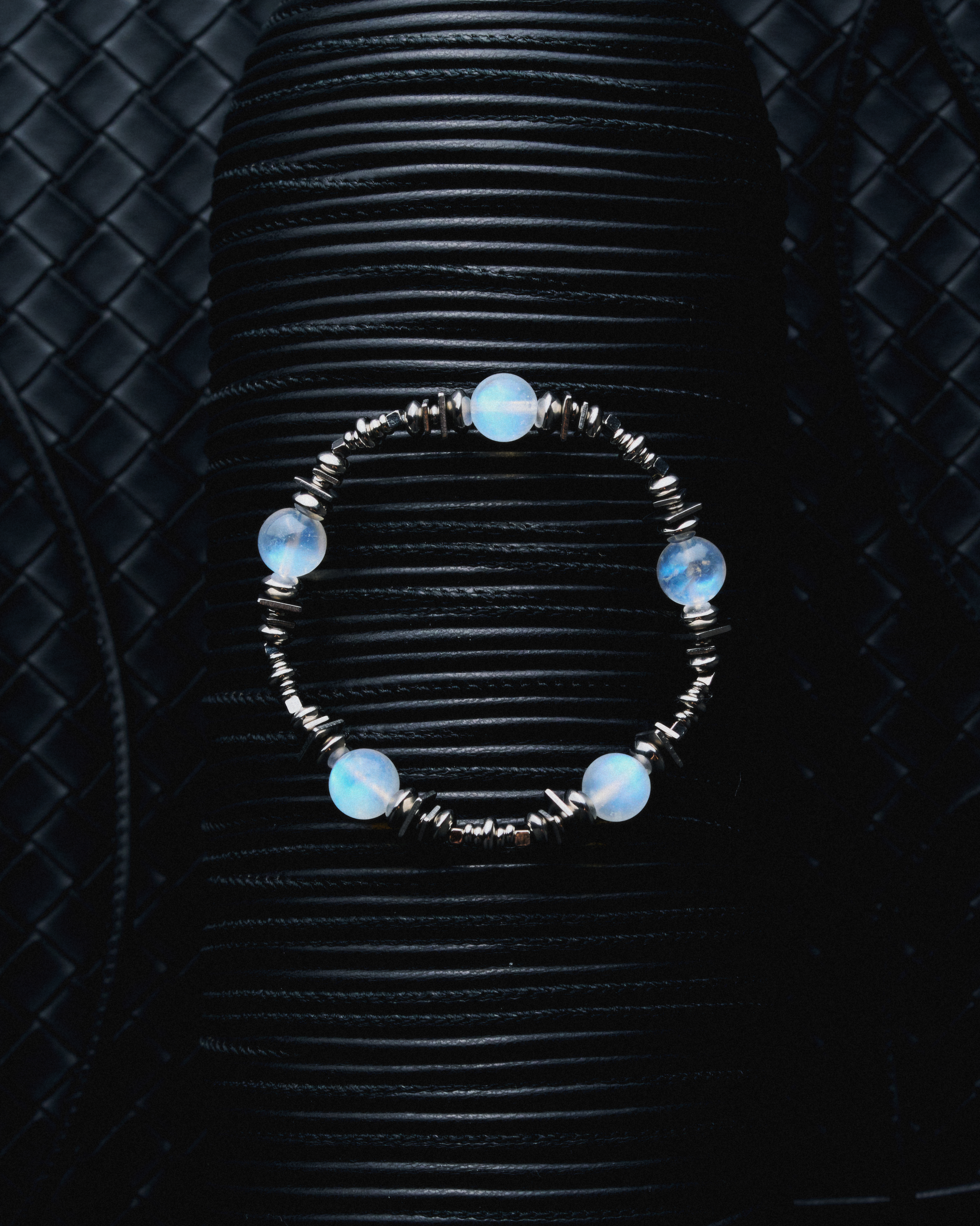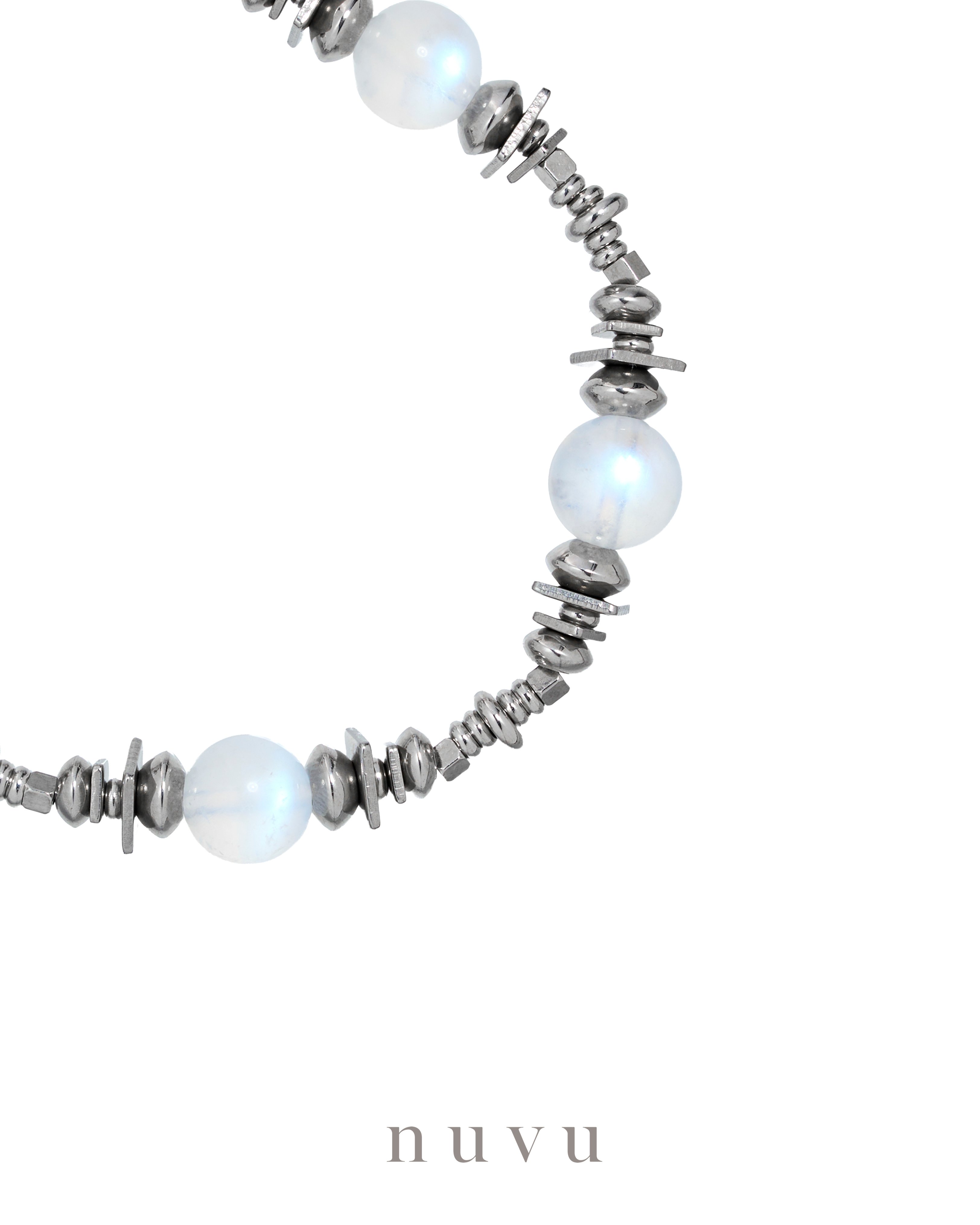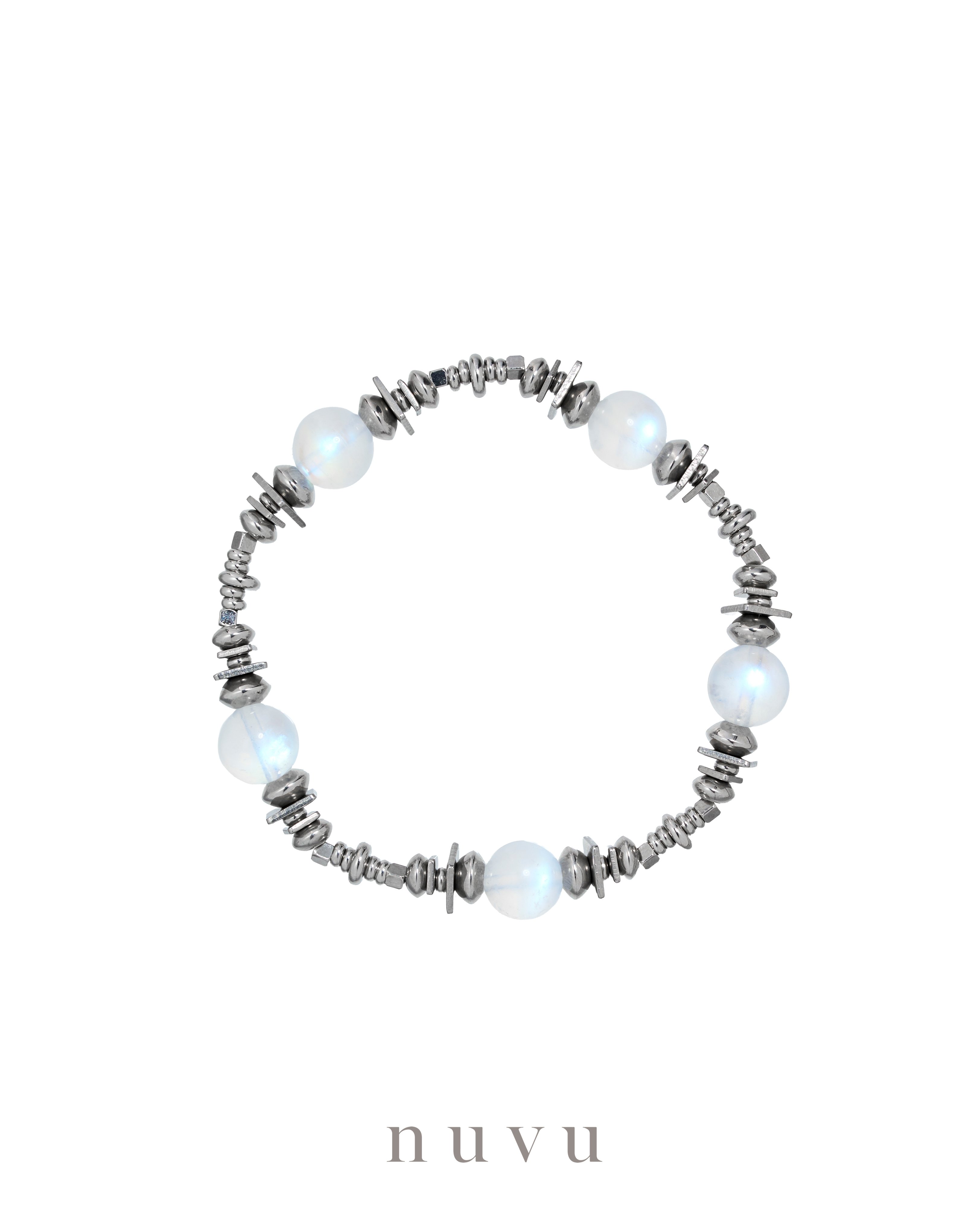 NUVU · Calling From the Moon Series The second release of 2026 had to be something everyone loves — and of course, it’s Blue Moonstone. This time, it arrives in large, icy-clear, high-quality pieces, luminous and refined, paired with rare Blue Moonstone Dragon Turtle carvings. Every piece is pure essence — no fillers, no compromises. Calling From the Moon is inspired by the quiet pull of the full moon in the night sky — calm, clear, and unwavering. Blue Moonstone has long been known as an emotional healer, gently guiding feelings back into balance. It soothes restlessness, eases anxiety, clears negative energy, and supports deep, restorative sleep. When exhaustion, stress, or emotional overload builds up, its energy helps you truly rest and reset. Emotions shape our personal feng shui. When your emotions stabilize, luck begins to flow. This series is especially suited for those who feel easily triggered, impatient, overwhelmed, anxious, or mentally overworked — and for anyone struggling with sleep or emotional heaviness. Blue Moonstone works from the inside out, softening your inner world so your outer life can move more smoothly. Let Calling From the Moon accompany you like moonlight on still water — bringing calm back to your heart, clarity back to your mind, and a quiet confidence that allows your natural glow to return. Sometimes, all you need… is to answer the moon’s call. 🌙 Crystal : Blue Moonstone Material : Stainless Steel Bead size : 8mm Bracelet : 16cm Delivery Time : All our designs are meticulously handcrafted, which requires time for production. Kindly allow 7-14 days for delivery to your doorstep. Any special enquiry please contact our customer service.